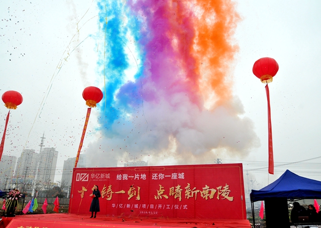 1月22日上午,南陵華億新城開工典禮隆重舉行。華億集團董事長項義水、魯班集團董事局主席汪錫文出席開工典禮,并共同為祥獅點睛。