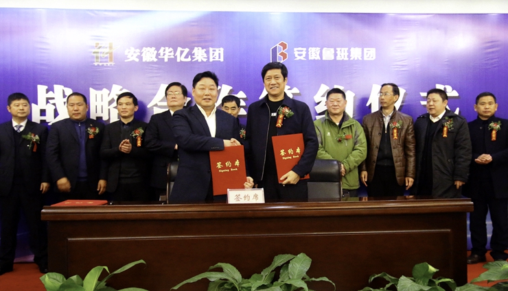 2018年1月22日上午,華億集團、魯班集團戰略合作簽約儀式在南陵大浦綠洲魯班集團總部舉行。華億集團董事長項義水、魯班集團董事局主席汪錫文分別代表雙方在合作文本上簽字。