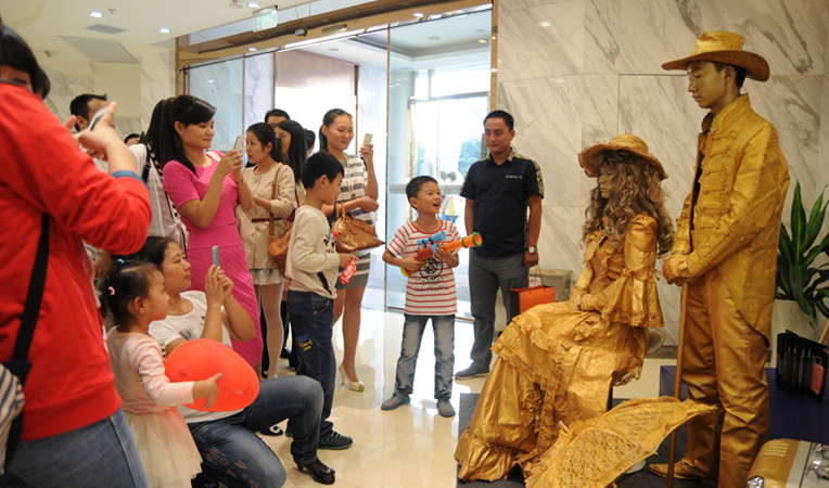 國慶七天,購物中心內(nèi)人頭攢動(dòng),銷售異常火爆。為了回饋廣大消費(fèi)者,華億國際特別推出滿減、購物贈禮、會員抽獎(jiǎng)等一系列活動(dòng)。此外,模特秀、真人秀等活動(dòng)吸引了眾多顧客圍觀,購物同時(shí),享受了一場視覺大餐。
