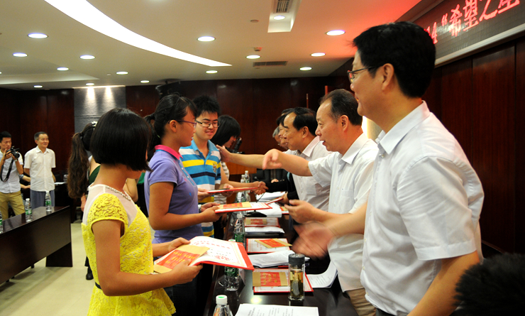 8月9日上午,蕪湖市愛心助學(xué)基金會2014年度“希望之星”華億獎學(xué)金頒獎儀式舉行。13位在今年中、高考中取得優(yōu)異成績的學(xué)生及獲全國優(yōu)秀少先隊員稱號的無為縣實(shí)驗(yàn)小學(xué)學(xué)生丁浩然獲獎。