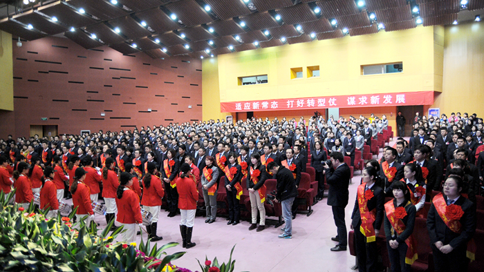 3月18日,安徽華億集團2015年度經濟工作會議在蕪湖市百花劇場隆重召開,近600名來自集團總部和下屬各公司的代表出席了大會。大會由集團黨委書記、副總裁陳愛國主持,集團董事長項義水,總裁項領,副總裁顧踴躍,財務總監劉建林,副總裁杜先松、張靖、錢毅出席大會并在主席臺就座。項領總裁作年度工作報告,項義水董事長發表了重要講話。