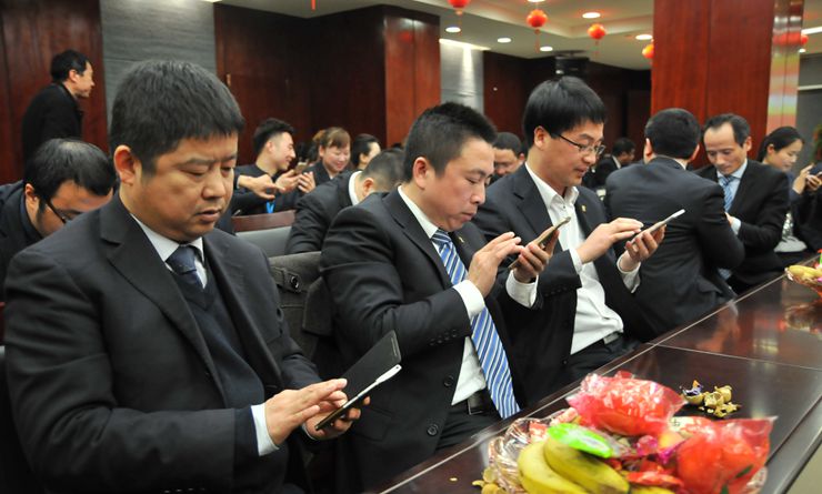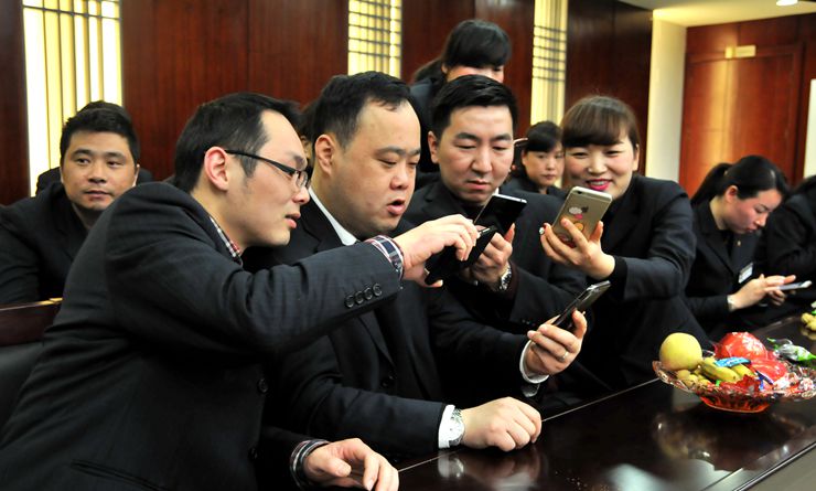 上午10時,在喜慶的樂曲聲中團拜會正式開始。項領總裁代表集團經營班子向大家致新春祝詞,集團領導班子全體成員和各公司主要負責人,華億小馬王國、華億樂購電商項目等新業態主要負責人先后向大家拜年,恭祝大家新春快樂,事業進步,同時也表達了自己在新的一年創新工作的決心。自由發言階段,不少華億人紛紛展現才藝,用歌聲表達對企業的祝福,和對祖國繁榮昌盛的贊頌。團拜會現場,董事長、總裁帶領大家集體體驗了當下十分流行的“紅包”拜年新風,通過微信紅包向大家派發“開門紅”,集團經營班子成員,各公司主要負責人紛紛現場派發紅包,陣陣“紅包雨”引起現場歡呼聲不斷,掌聲此起彼伏。