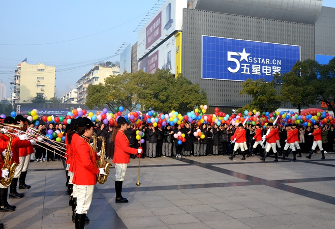 在步行街華億國際南樓門前廣場,數(shù)百名員工排列成整齊的隊伍,千余只氣球在空中歡快的舞動著,八門禮炮一字排開,氣氛熱烈。上午九時許,主持人宣布升旗儀式正式開始,華億軍鼓樂隊奏響《國歌》和《華億之歌》,女子升旗手們踢著正步來到旗桿前。伴隨著雄壯的樂曲,五星紅旗和華億集團司旗緩緩升起,迎風飄揚。