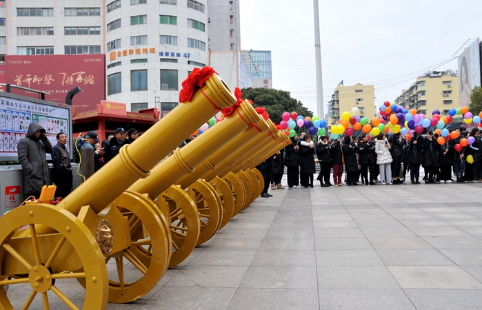慶典儀式現場,八門金黃色禮炮一字排開,200余名員工代表手持彩球、面帶笑容整齊列隊。伴隨著歡快的《祝你生日快樂》樂曲,兩只喜慶的舞獅在廣場上歡樂的舞動著,現場氣氛喜慶熱烈。