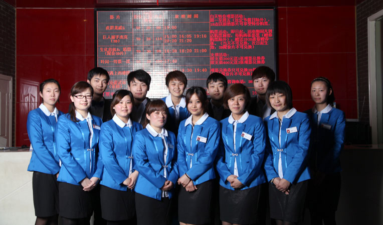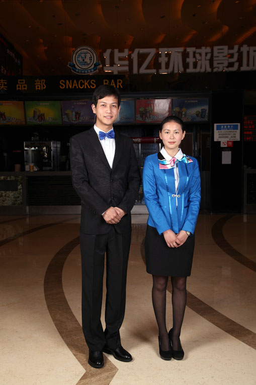 2013月4月8日,華億環(huán)球影城一線工作人員統(tǒng)一穿著漂亮的新工裝上崗,為影城增添了一道嶄新的風(fēng)景。新工裝款式新穎,端莊大方,充分展現(xiàn)了員工意氣風(fēng)發(fā)的精神面貌,進(jìn)一步提升了華億影城的服務(wù)窗口形象。