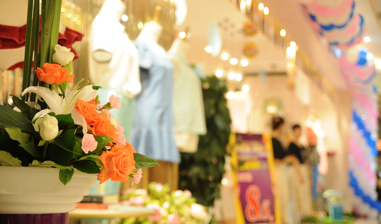 除折扣優惠外,華億國際購物中心在購物氛圍營造方面下足了功夫。活動前夕,華億國際購物中心工作人員對商場布置統一的活動導視標識,統一的折扣標識。各貨品專柜根據自己品牌特色及活動主題,布置相應的氣球拱門、鮮花立柱、水果飲品等,給購物中心營造出一種節日的氣氛,讓消費者在這種輕松、優雅、愉悅的環境中享受購物的樂趣。