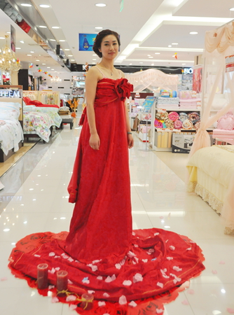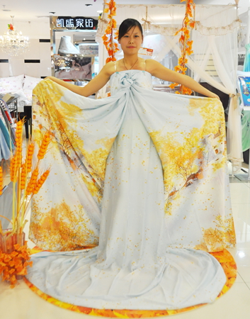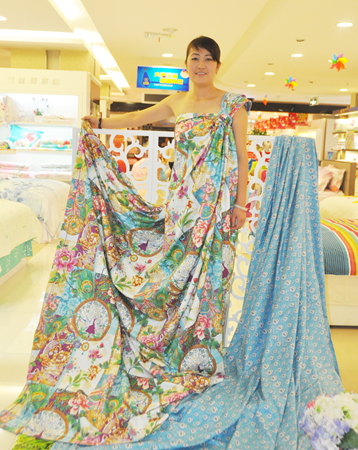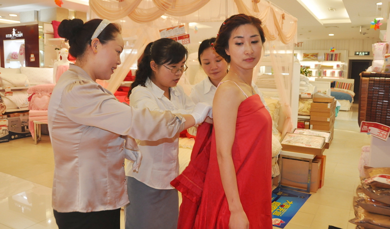 員工們根據(jù)春夏秋冬4個主題,將家紡布藝裝飾、點綴在美麗的模特身上,打造“神奇的裹布藝術”系列作品,體現(xiàn)出智慧與美的結合,受到了顧客的廣泛好評。