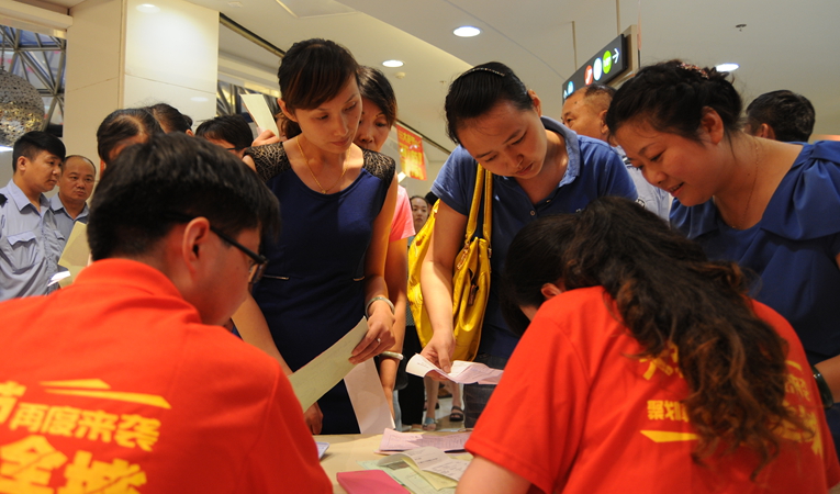 現場所有一線工作人員都換上了大紅色的工作服,上面標注著顯眼的“大搶節”字樣,方便工作人員之間的協調工作,更重要的是消費者可以隨時隨地找到華億員工咨詢幫忙。特別為這次活動添加的44 臺收銀機,早已擺放到位,調試完畢,兩座商場98臺收銀機,整機待發。華億集團其他戰線的近千名員工也輪番趕來支援,幫助維持秩序。70名專業安保人員分布在華億國際南北兩樓,巡邏查看和發放獎品等地重點蹲點結合,確保消費者“搶”的放心、舒心、省心。