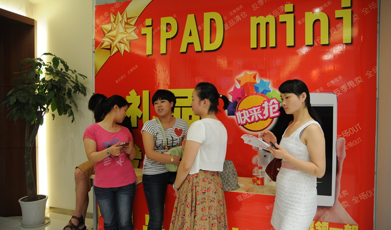 晚上7點,在IPADmini禮品領取專柜前,竟然都已經有人在排隊,離零點還有5個小時,也就是說他們還要等上5個小時,“最早的下午2點就來了”, 在電動車發放點,同樣離送出時間還有5個小時的時候,就有人在等待了,還有人帶來了小板凳、扇子、水,有備無患,做好了打持久戰的準備。