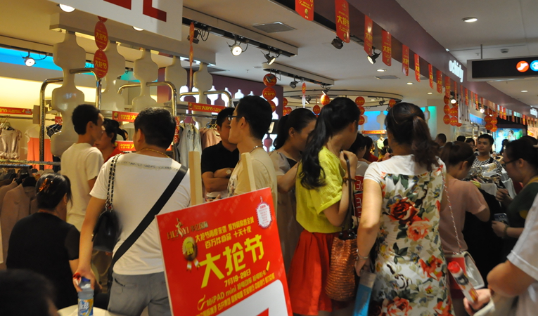 仿佛如昨,大搶節剛把江城裝扮成紅色與金色的海洋,人們便奔走呼告,一剎那婦孺皆知。2度來襲、10天10夜、100部IPADmini、300輛電動車、600張電影卡、百萬商品,盛夏7月,江城似乎沒有什么比大搶節更熱!
