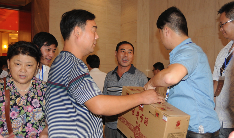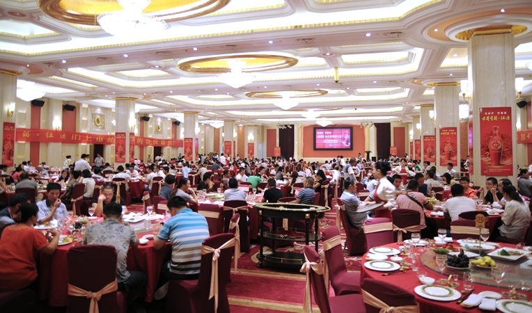 在華億超市公司工作人員的精心策劃布置下,品鑒會(huì)活動(dòng)現(xiàn)場(chǎng)顯得十分高端、喜慶。酒店門(mén)口大紅的空飄隨風(fēng)擺動(dòng),條幅字幕顯眼,拱門(mén)立于路邊,吸引了無(wú)數(shù)路人眼光。酒店內(nèi),大紅色的迎賓導(dǎo)視系統(tǒng)十分醒目,工作人員精心的將會(huì)廳內(nèi)立柱全部包裹,現(xiàn)場(chǎng)一片紅紅火火。上午10時(shí),參加古井貢·紅運(yùn)上市品鑒會(huì)的重點(diǎn)客戶陸續(xù)到來(lái),客戶在簽到處將抽獎(jiǎng)券放入抽獎(jiǎng)箱后,便來(lái)到宴會(huì)廳入席,品嘗果品,觀看華億集團(tuán)發(fā)展成果介紹短片,現(xiàn)場(chǎng)一片喜氣洋洋。