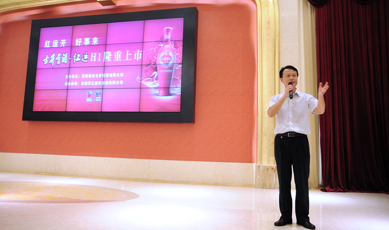 中午12時(shí),55桌的會(huì)場(chǎng)內(nèi)座無(wú)虛席,500多名市區(qū)各大酒店、流通商貿(mào)精英匯聚一堂,華億超市古井貢·紅運(yùn)H1項(xiàng)目上市品鑒會(huì)在大氣磅礴精彩紛呈的開(kāi)場(chǎng)舞蹈中正式開(kāi)始。古井銷售公司皖南營(yíng)銷總監(jiān)薛曉峰發(fā)表講話。他表示,古井貢·紅運(yùn)是古井集團(tuán)繼年份原漿系列之后推出的又一戰(zhàn)略性全國(guó)主推產(chǎn)品,紅運(yùn)擁有全國(guó)老八大名酒強(qiáng)大的品牌優(yōu)勢(shì),它秉承了古井貢酒的釀造工藝,入口幽香淡雅,定價(jià)精準(zhǔn),是婚宴用酒、節(jié)日禮酒、親朋聚會(huì)用酒的最佳選擇。此次選擇與華億超市公司合作,主要是看中華億集團(tuán)在在商貿(mào)流通行業(yè)的強(qiáng)大實(shí)力。