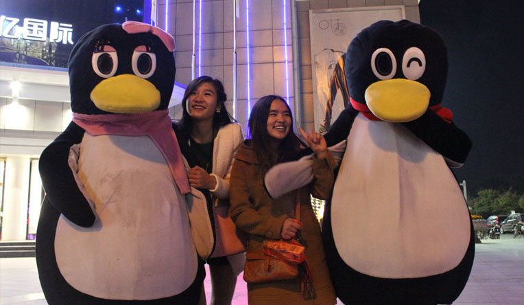 今天傍晚,當蕪湖熱線趕到華億國際活動現場時,廣場上已經聚集了大量的觀眾,他們拿著手機正在仔細的觀看大屏幕上的活動細則,活動現場還有一對可愛企鵝和前來參加活動的觀眾互動,吸引了不少觀眾留影紀念。