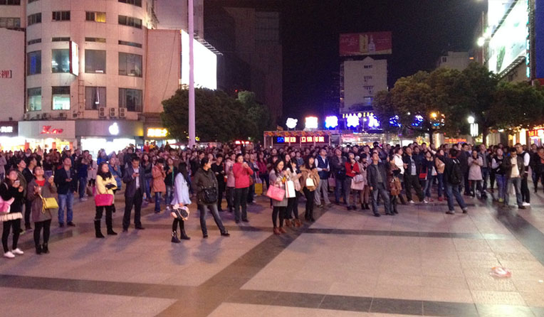 此次“微信萬人搖一搖”活動共進行了五次,從晚上6點開始到8點結束,每半小時進行一次。雖然當時的天空下起了小雨,但依然沒有擋住觀眾的熱情,逛街的行人還不時地加入到搖微信的大軍中。