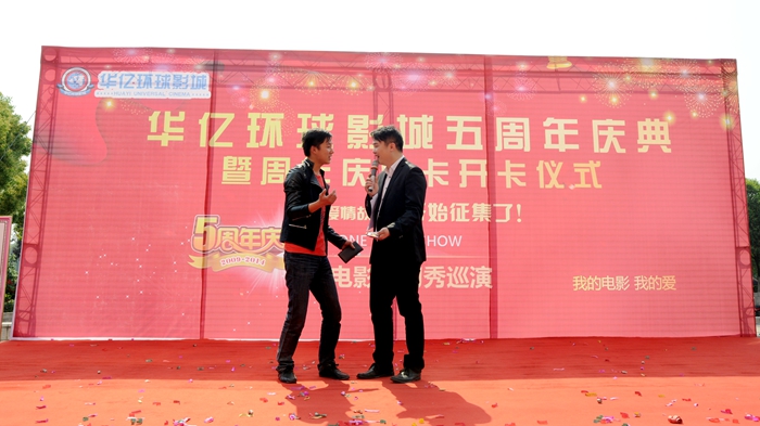 慶典儀式在激昂的小提琴演奏暖場(chǎng)后開(kāi)始,偉晨文化公司總經(jīng)理孫艷發(fā)表講話,總結(jié)了華億環(huán)球影城開(kāi)業(yè)五年來(lái)取得的成績(jī),表達(dá)了對(duì)華億環(huán)球影城影迷的感謝。她說(shuō),隨著連鎖項(xiàng)目的拓展,華億環(huán)球影城將一如既往秉承“誠(chéng)信、創(chuàng)新”的品牌意識(shí)和經(jīng)營(yíng)理念,加強(qiáng)影城設(shè)備更新,提升服務(wù)質(zhì)量,為各地影迷提供更優(yōu)質(zhì)的觀影體驗(yàn)。華億集團(tuán)黨委書(shū)記、副總裁陳愛(ài)國(guó)發(fā)表賀詞,他對(duì)支持華億環(huán)球影城發(fā)展的各界朋友表達(dá)了感謝,表示在集團(tuán)“立足本埠建設(shè)、穩(wěn)步對(duì)外拓展”的戰(zhàn)略指引下,在集團(tuán)各產(chǎn)業(yè)板塊的相互促進(jìn)下,華億環(huán)球影城的明天將更美好。
