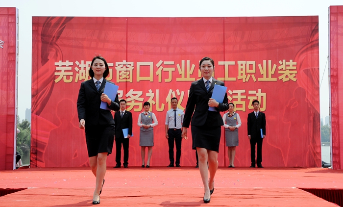 2014年4月30日,“蕪湖市窗口行業員工職業裝暨服務禮儀展示”活動在中山路步行街落下帷幕。華億國際作為蕪湖市商務局代表隊與蕪湖市衛生系統、公安系統、銀行系統、電力系統、通訊系統等窗口行業22支代表隊同臺展示,獲得一致好評。