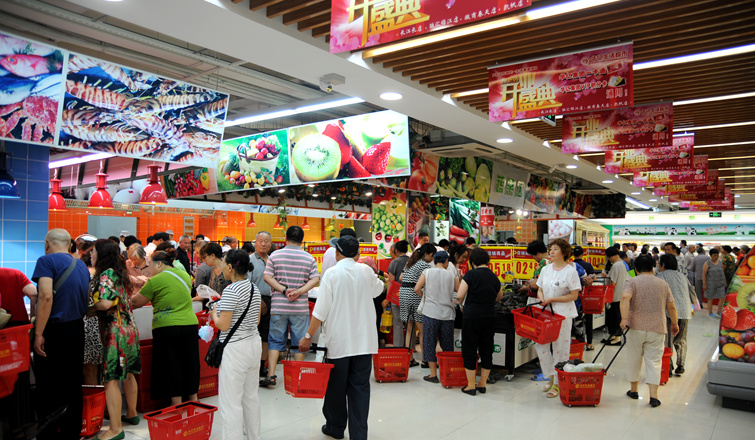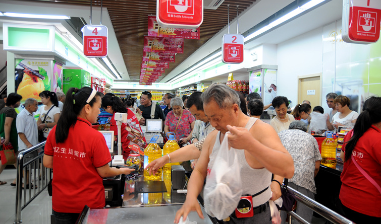 上午8時開業剪彩儀式正式開始,項領總裁等領導為凱帆大廈店的開業剪彩,在喜慶祥和的音樂聲中,數百名居民走進超市。物美價廉的商品充分調動了顧客的購買欲望,開業10分鐘后,青菜、海帶、葡萄、香蕉等特價商品被搶購一空,特價雞蛋、魚肉、牛奶、食用油等商品也是消費者搶購的對象,工作人員在倉庫和貨架之間來回穿梭,及時補貨。華億城市生活廣場總經理楊艷菁表示,凱帆大廈店的火爆開業只是一個開始,今后將會給周邊的居民提供更多物美價廉的商品和更優質的服務。