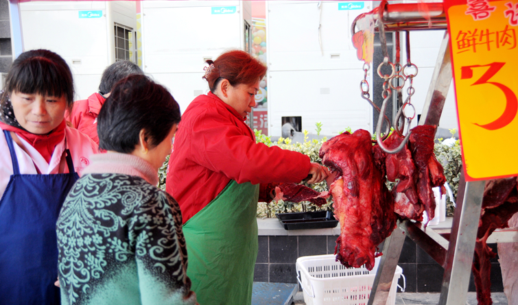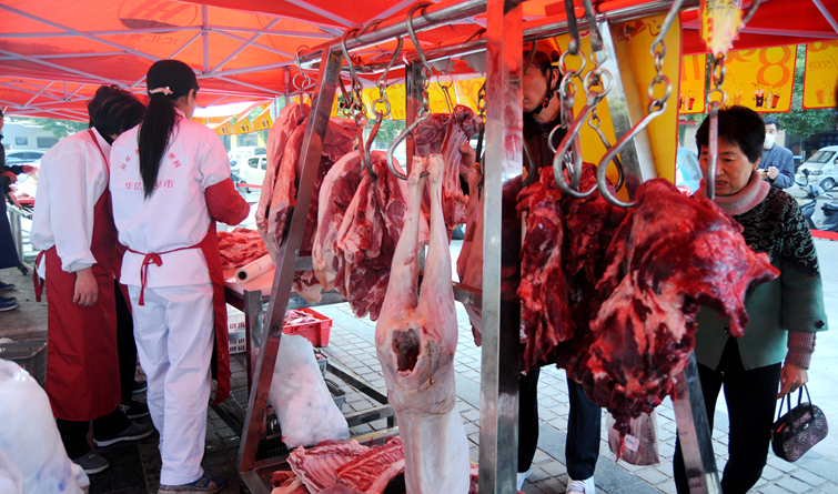 11月19日,華億生活超市推出新鮮肉品現場分割活動,從雙匯國際化養殖基地直接采購的整頭羊羔、整塊豬肉、牛肉擺放在案頭,價格實惠,滿足冬季腌制臘肉的采購需求,活動深受社區居民好評。