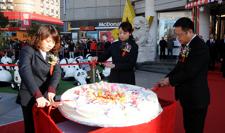 元旦店慶期間,華億國際推出了豐富多彩的組合營銷活動,琳瑯滿目的商品讓顧客流連忘返,還為幸運顧客準備了20部iPhone6 Plus手機,并在商場內推出了熊貓先鋒藝術展。100只憨態可掬的熊貓石雕,通過藝術愛好者的精心調色、描繪,呈現出一個個形色獨特的藝術品,讓顧客購物的同時,體驗到濃厚的節日喜慶和藝術享受。