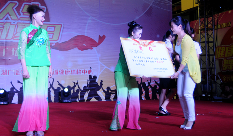 繁昌華億廣場門前,參賽的大媽們在舞臺上翩翩起舞,活力四射,現場人氣火爆,市民們翹首圍觀。首場比賽共有5支隊伍參加,最終群星藝術協會中老年藝術分隊獲得了周冠軍。