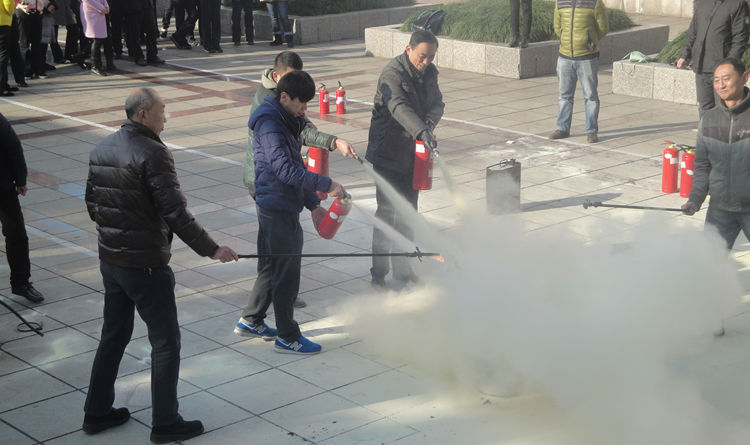 本次演習中,消防人員著重介紹了冬季消防安全注意事項,以及干粉滅火器的使用方法等知識。隨后的實戰演練中,員工們手持滅火器,撲滅正在熊熊燃燒的汽油桶。消防人員針對新員工的不當操作進行現場講解,有效提升了員工的安全技能。