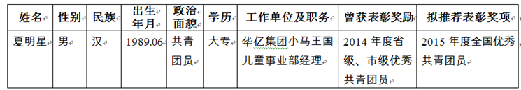 2015年度“全國優秀共青團員”、“全國優秀共青團干部”公示表