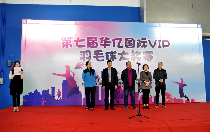 本屆大賽在鼎弘羽毛球館舉行,蕪湖市體育局群體科科長曹哲平,安徽華億集團副總裁張靖,華億國際副總經理、旗艦店店總王萍,蕪湖市羽毛球協會副主席吳容宇、秘書長胡瑞清出席開幕式。王萍副總經理代表大賽主辦單位致辭,張靖副總裁宣布大賽開幕。