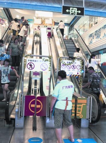樂城超市投資300萬元買進的“人車分離”的購物車電梯。