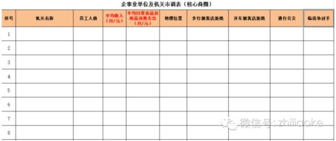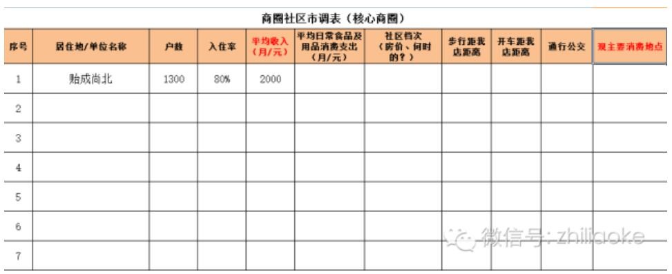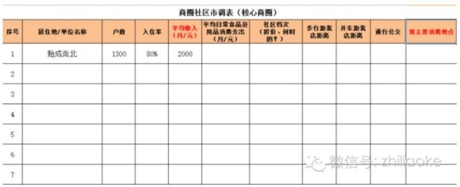 附表為商圈調研時需要采集數據備用的工具
