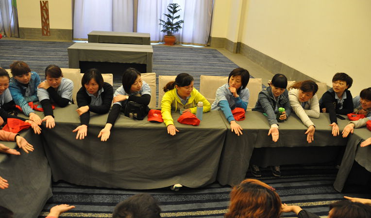 “蘇武牧羊”——盡管4個(gè)團(tuán)隊(duì)的操作方法大體相同,不過每次體驗(yàn)都有新的變化,從“牧羊犬”拉“羊”入圈,到借助樹枝,再到聲音引導(dǎo),在項(xiàng)目難度不斷提高的情況下,學(xué)員的方式方法也變化多端,最終順利完成該項(xiàng)目。?xml:namespace>